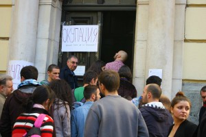 Припомняме, че на 23 октомври, сряда, бе първият ден от протестните дейности на студенти по време на по време на лекция на конституционния съдия проф. Димитър Токушев, когото студентите обвиняват за връщането на Делян Пеевски като депутат в Народното събрание. След 24-часова окупация и на Факултета по журналистика и масова комуникация вече второ денонощие входовете на Ректората са блокирани от студентите. Те предупредиха пред репортерите на радио “Реакция”, че протестът им ще е безсрочен до подаване на оставка на настоящия кабинет на БСП.