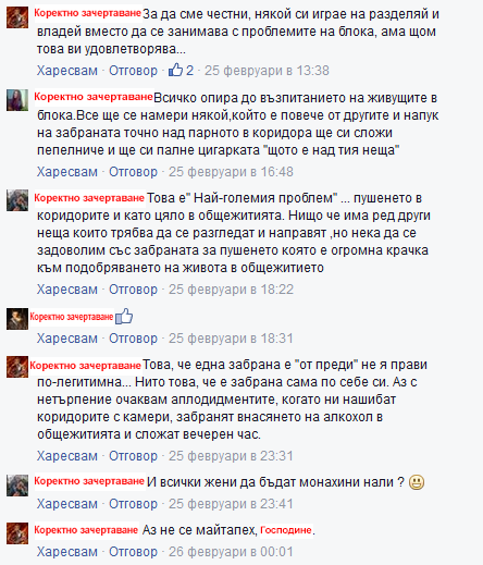 Всичко се изясни прекалено бързо. Целта са и двете! Още докато се чуха слухове за мащабни проверки из общежитията, от Ректората дойде информация, че се обсъжда повишаване на таксите. Не искам да се връщам и да мисля защо не реагирах тогава. Болно ми е. Очаквах нещата и с двете да се уталожат с времето и реални последици да няма. Сбърках! Признавам вината си.